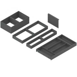 Combo sets are well-thought-out solutions for organising and structuring the contents of drawers and high-fronted pull-outs. They can be used as a customised and flexible dividing system for storing different items, making organised and optimal use of the available storage space. There are functional and aesthetic advantages for kitchen, bathroom and household furniture.